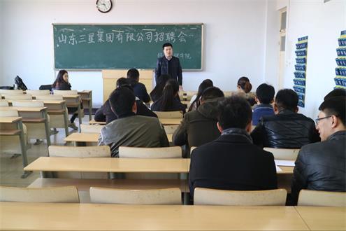 3月2日上午9时,申慱sunbet网站在7号教学楼202室举办山东三星有限公司专场招聘会,参加本次招聘会的人员有山东三星有限公司人力资源部负责人张金标、韩龙以及申慱sunbet网站2017届毕业生,招聘会现场80余人。
