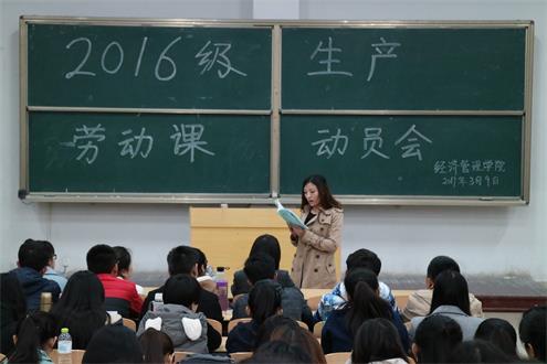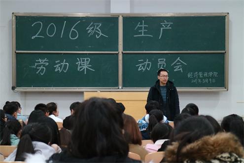 3月9日晚,申慱sunbet网站在7号教学楼205教室召开2016级生产劳动课动员会。申慱sunbet网站学生科科长王泰宁、2016级辅导员张娜娜以及第4周生产劳动课的班级同学共计140余人参加了本次动员会。