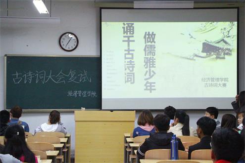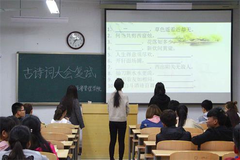 4月13日晚,申慱sunbet网站在7号教学楼204室举行古诗词大会选拔赛,申慱sunbet网站社团部副部长傅桐光、蒋明露等人担任评委,现场近60人。