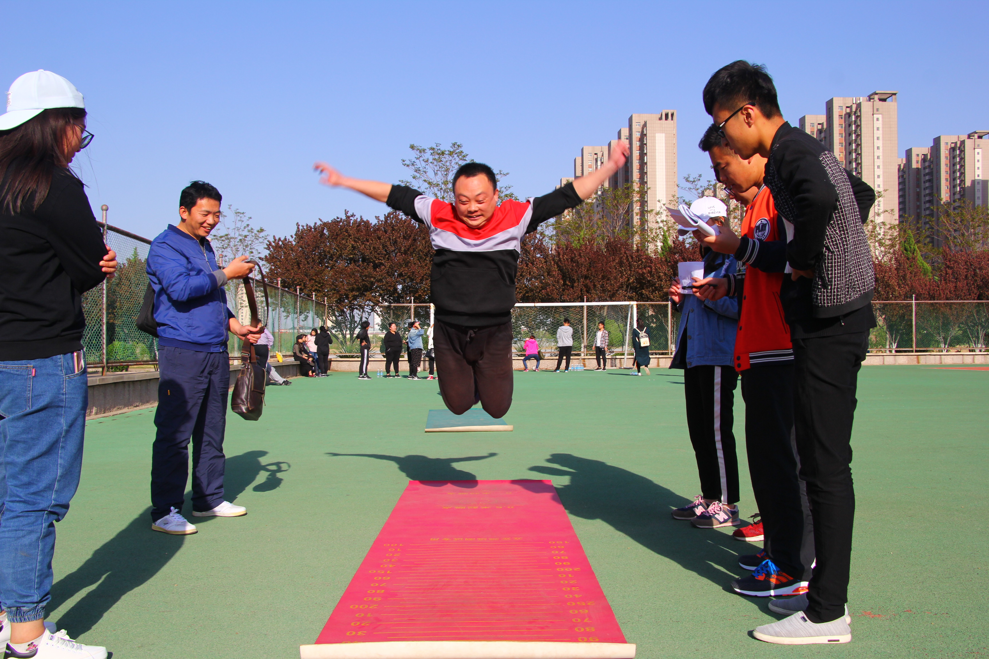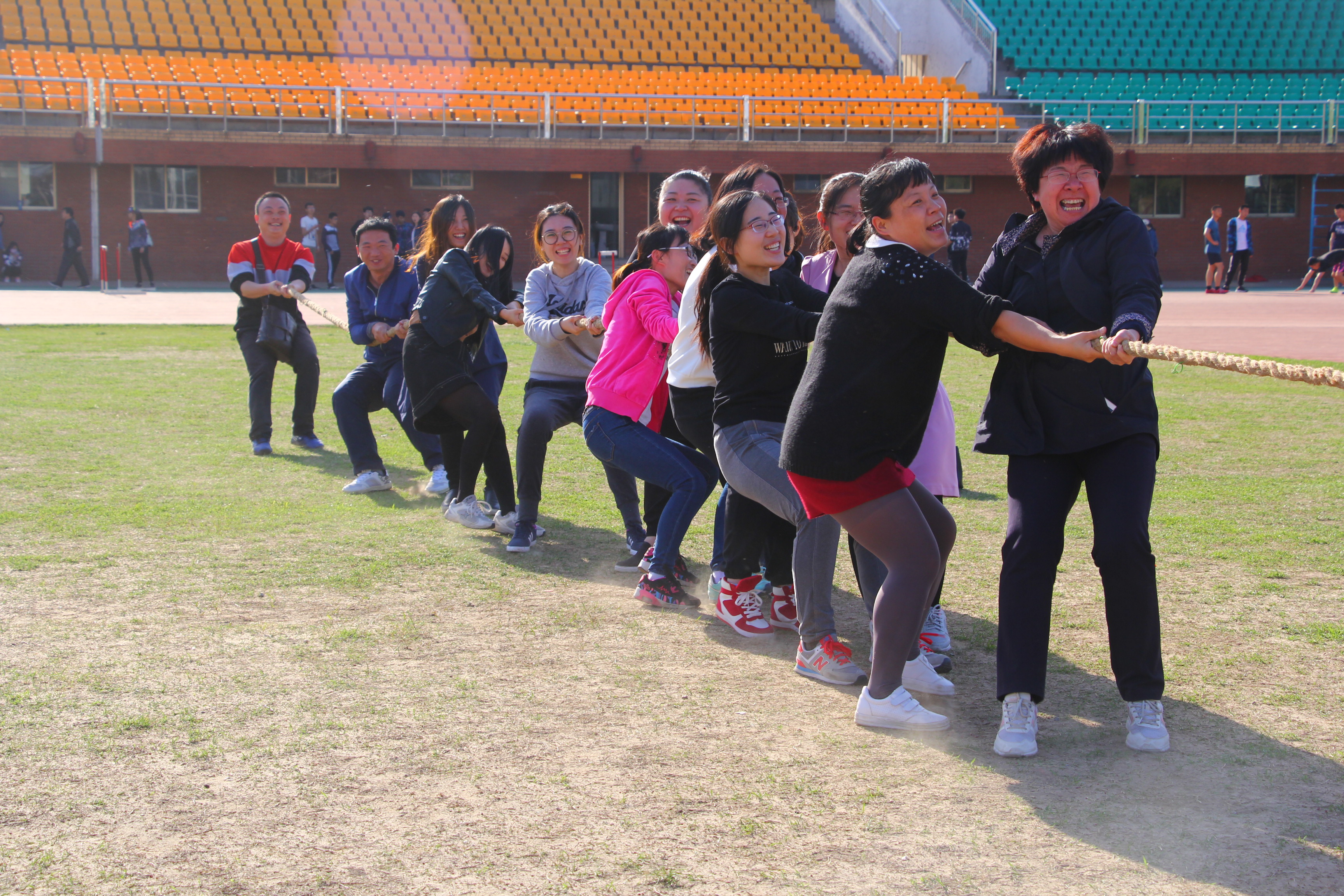 教职工们在运动中卸掉了生活和工作的压力,散发着青春和活力。在轻松愉悦又不乏激烈刺激的氛围中,身体得到锻炼、心情得到放松。同时,也增进了相互之间的友谊与了解。