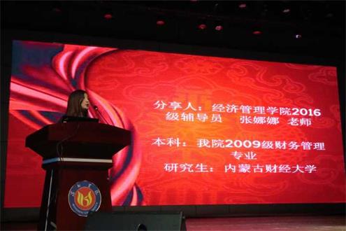 5月1日晚,申慱sunbet网站在学苑会堂召开考研经验分享会。2013级学生代表蒋连杰、高黎、孙悦等8人分享了考研经验,2014、2015、2016级全体本科辅导员、班主任及本科学生参加了此次会议,会议由申慱sunbet网站副院长王春晖主持。