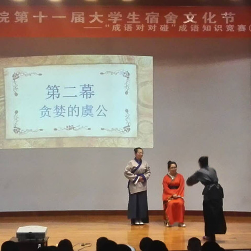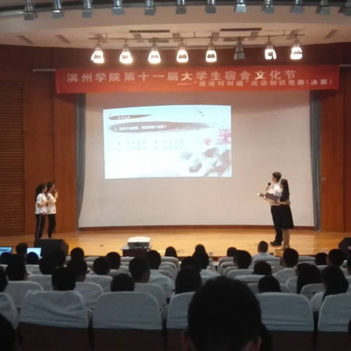 本次活动旨在建设集知识性、文化性、趣味性于一体的学习型宿舍。决赛共分为牛刀初试、成语接龙、风采展示三个阶段,我们参赛选手面对少见的成语问题也沉着应对,充分展现了我们学生优秀的文化底蕴。比赛过程中安排的歌舞表演,缓解了紧张的比赛气氛,更带给观众们耳目一新的感觉。台下观众掌声不断,为选手们的精彩表现呐喊助威,赛场气氛热烈。最后我们参赛选手以优异的成绩获得了本次比赛的二等奖。