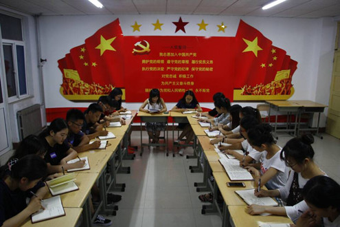本次活动分两大阶段进行。第一阶段由学生公寓党员工作站指导老师、申慱sunbet网站学生第一党支部书记苏成荣带领全体党员同学共同学习《山东省第十一次党代会绘出齐鲁发展新蓝图》和《余忠剑:推进“两学一做”让“四个合格”成为党员标配》;第二阶段,苏成荣老师对全体学生党员提出希望和要求,希望广大在校学生党员营造良好的学生公寓文化建设氛围,切实发挥好公寓管理和服务职能,合理组织学生公寓范围内的与毕业生温馨告别活动,做好毕业生离校前的各项服务。最后苏成荣老师部署安排申慱sunbet网站本科毕业生离校期间党员公寓值班安排情况和注意事项。在此会议期间,全体参会人员认真学习并做好学习笔记,确保了政治理论学习的时效性。