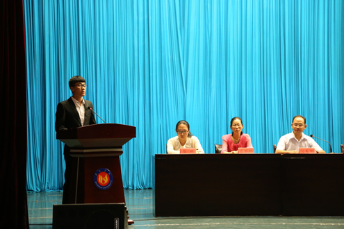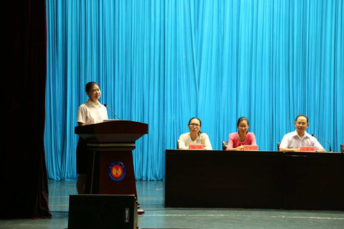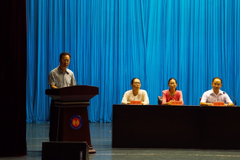 9月4日上午8点,申慱sunbet网站2017级新生开学典礼暨军训动员入学教育大会在学苑会堂隆重举行。学院院长、党总支副书记郭新伟,党总支书记、副院长贾卫东等党政领导以及学生科长、辅导员、班主任出席典礼,申慱sunbet网站2017级813名新生参加会议。会议由学院党总支副书记何秀国主持。