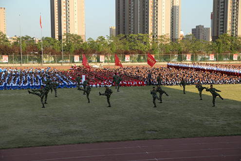 在我们领导的高度重视下,整个军训期间,我们学生严格按照教官指挥,吃苦耐劳、刻苦训练,取得了不错的训练成果。随着国歌响起,军政训练总结大会拉开帷幕。我们685名新生组成的9个军训方队依次通过主席台接受检阅。他们朝气蓬勃的面孔、喊着嘹亮的口号、迈着整齐的步伐通过主席台,展现出我们积极的风貌。同时,我们新生在军歌比赛和内务评比中斗志高昂,在军训期间荣获内务卫生优秀连队、优秀组织单位两项奖项。