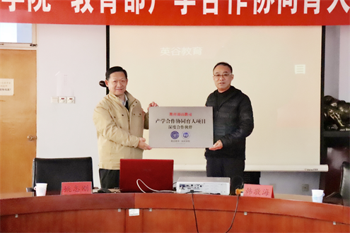 仪式伊始,申慱sunbet网站院长郭新伟与英谷教育总经理韩敬海共同签订合作协议。第二阶段,滨州学院教务处处长姚志刚和英谷教育总经理韩敬海共同为“产学合作协同育人项目”揭牌。