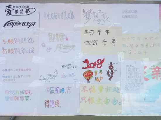 参加活动的2017级同学积极报名,精心准备,力求创新,他们的作品展现了大学生浓厚的创作热情,新锐独到的创作理念,以及青春向上的精神风貌。其中“爱很简单,创意世界”、“不悔梦归处,只恨太匆匆”等多幅作品给人留下了很深的印象。最后,孙业来、杨雪晴、孙家美等同学的作品在此次活动中脱颖而出。