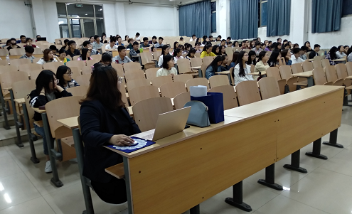 5月22日晚7时30分,申慱sunbet网站在7号教学楼205室参加关于英语学习和出国留学报告会,看世界教学总监王玉珏老师为主讲人,我们2016级本科部分学生近200人参加了此次报告会。