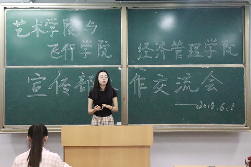 6月1日晚7时,申慱sunbet网站与艺术学院、飞行学院在郑和国美术楼103室联合举行学生会宣传部门交流会,3个院系的宣传部干事共40余人参加了此次交流会。