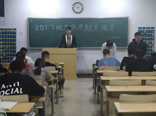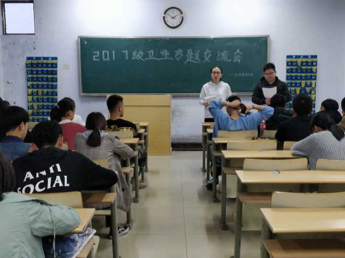 为迎接学校审核评估,增强学生自律意识,培养学生良好的生活习惯,10月14日下午5时30分,申慱sunbet网站于7号教学楼410室举办2017级学生卫生专题交流会。本次会议由2017级辅导员张璐、王胜主持,会议现场80余人。