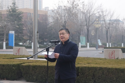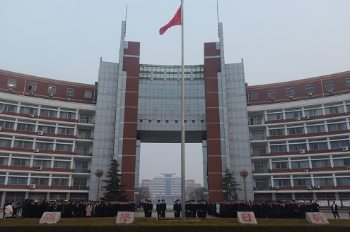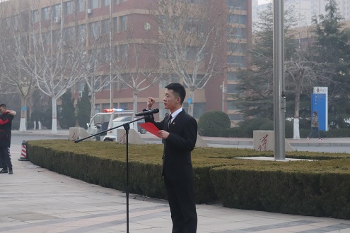 6时50分,待全体人员就位后,主持人宣布升旗仪式开始。国旗班的旗手迈着矫健而整齐的步伐,护送着鲜艳的五星红旗入场。伴着《义勇军进行曲》的响起,全体师生唱国歌、行注目礼,注视着五星红旗冉冉升起。随后,学生代表在国旗下作主旨演讲,号召同学们在新的学期能以崭新的姿态、满腔的热忱、饱满的精神投入到新的工作和学习中,顽强拼搏、奋勇担当,书写无愧于历史和时代的青春篇章!最后,学生工作部部长贾卫东讲话,他号召广大青年学生要坚定理想信念,用习近平新时代中国特色社会主义思想引领前进的方向;要勇担使命,用实现中华民族伟大复兴中国梦的时代主题书写奋斗的青春;要甘于奉献,用新时代奋斗者的价值追求让青春焕发绚丽光彩;要严于律己,用社会主义核心价值观的道德坚守成就精彩的人生。