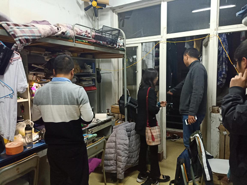 本次消防安全专项整治活动共分为三个阶段。第一阶段,由我们学生会宿管部对各学生宿舍进行排查,包括排查各类违规电器、督促同学们清理阳台杂物及宿舍内易燃易爆物品、督导同学们规范使用插排、网线等,完成我们各学生宿舍情况的初步摸排;第二阶段,由班主任通过主题班会的形式开展宿舍安全教育,普及宿舍安全知识,教育学生遵守宿舍安全管理规定,并且学生本人签署了《不私藏和使用违规器具保证书》。班会之后,各班主任带领本班班干部、宿舍安全员对本班所有宿舍进行了全面的宿舍消防安全隐患排查,彻底摸清本班宿舍存在的问题并提出整改要求;第三阶段,由我们党总支副书记何秀国带队,各年级辅导员与学生会干部分为4个小组到我们各宿舍楼展开检查,检查开始前何书记强调,所有检查人员务必认真对待,严格把关,对宿舍存在安全隐患的同学进行严肃批评教育。在检查过程中,老师们重点对宿舍内是否存有大功率违规电器、烟酒违禁物品、乱拉乱放电线插排等隐患进行排查,针对发现的问题提出整改意见,并要求及时落实,坚决消除安全隐患,对违规物品进行登记、没收,还嘱咐同学们要注意防火防盗、增强安全意识,主动上报存在的安全隐患,杜绝消防事故发生。