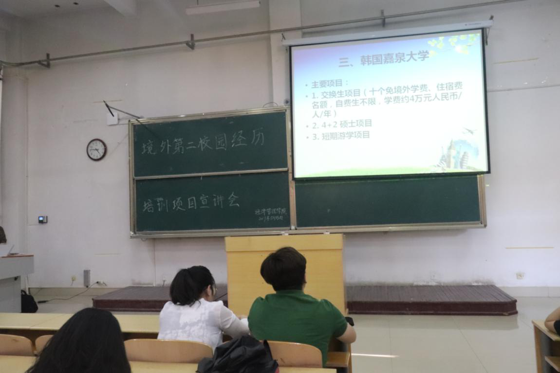 宣讲会上,李玉婷老师首先对我们的国际合作交流情况作了简单介绍。接着,李老师从项目时间、项目人数、项目内容和项目费用四个方面,分别介绍了英国亚伯大学、韩国嘉泉大学、马来西亚泰莱大学、精英大学、菲律宾德拉萨大学等培训项目。此外,李老师就出国学习前的准备工作作了详细说明,鼓励同学们结合自身实际情况,以有益于学业生涯为出发点,争取出国交流学习,全方位提升自己。最后,在互动交流环节,李老师对于同学们的提问给予了生动、细致的回答,气氛热烈。