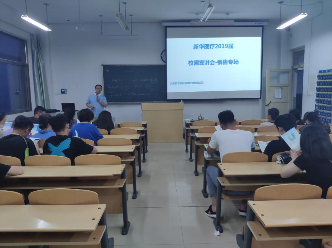 5月26日晚,新华医疗于7教301教室举办新华医疗2019届校园招聘宣讲会。申慱sunbet网站2019年部分应届毕业生参加了此次宣讲会,新华医疗公司的周经理为此次宣讲会的讲解人。