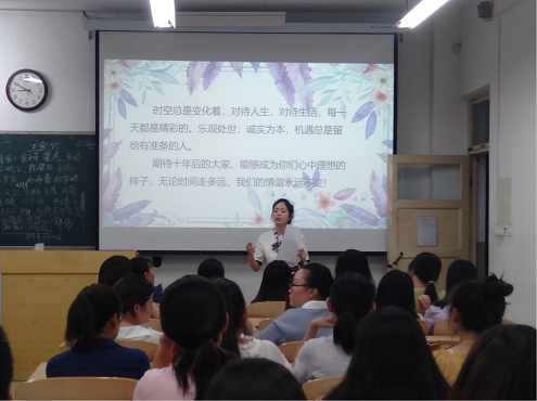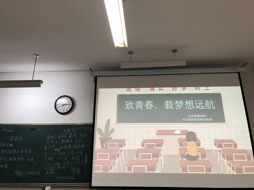 班会伊始,各班主任老师强调了离校的相关工作,教育学生严禁乱扔乱砸,严禁酗酒起哄闹事,损坏公物等违纪现象的发生,自觉维护良好的校园秩序,保持毕业生的良好形象,为自己的大学生活划上一个圆满的句号。随后,师生共同回忆大学四年的点点滴滴,感悟大学成长历程,心系母校,情留母校,追忆青春、畅想未来。之后,班长、团支书为同学们准备了特殊的毕业礼——离别信,并且全体毕业生在黑板上的“请假条”写上自己的名字,流露出对母校和老师深深的爱。紧接着,辅导员王贝贝以《我们的十年之约》为题真情寄语毕业生,希望同学们以后不论是工作还是继续求学,都要心怀生活的激情和自己的梦想,去创造自己独一无二的明天!班会最后,毕业生们纷纷表示感恩老师、感恩母校,今后会不忘初心,拼搏进取,谱写人生新篇章!