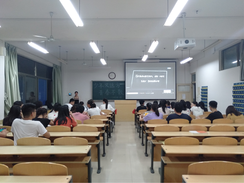 为做好2019届本科毕业生文明离校的各项工作,营造感恩母校、感念师恩的毕业氛围,6月23日晚,申慱sunbet网站于7号教学楼班会教室召开2019届本科毕业生“致青春,载梦想远航”主题班会。班会由2015级本科辅导员王贝贝及各班主任主持,全体本科毕业生参加了此次班会。