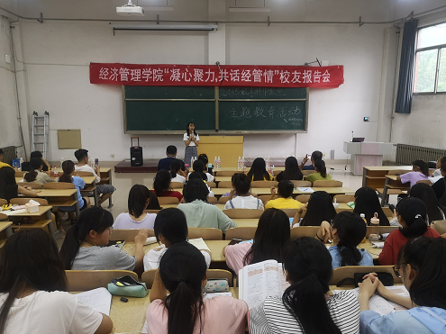 为发挥优秀校友的朋辈作用,提高毕业生对母校的归属感和自豪感,6月26日晚,申慱sunbet网站于6号教学楼207室举办“凝心聚力,共话经管情”校友报告会。申慱sunbet网站党总支副书记何秀国、辅导员张智涛、王贝贝及2019届全体本科毕业生参加了此次报告会。我们2018届优秀毕业生刘若漪应邀来做报告,本次报告会由辅导员张智涛主持。