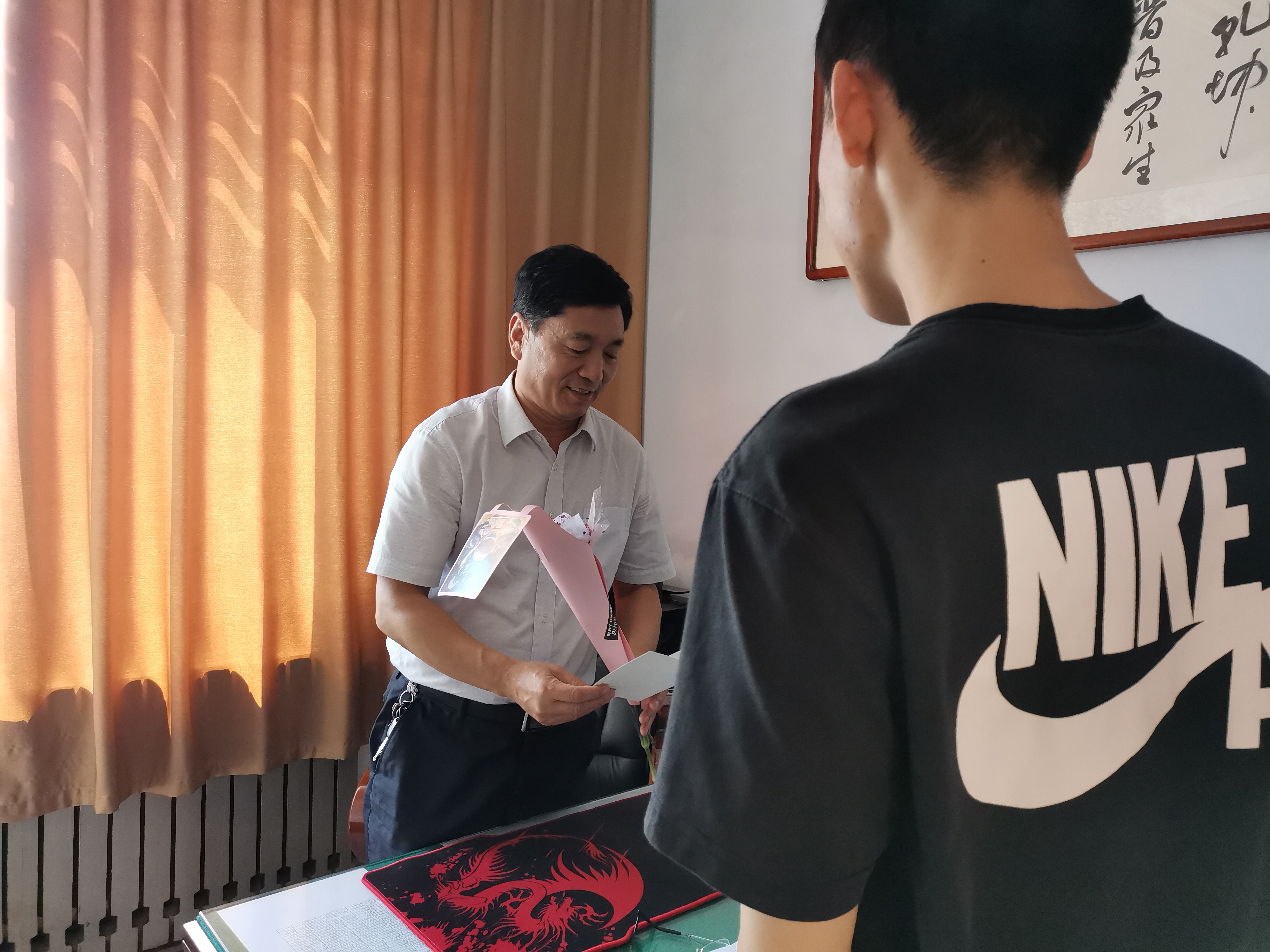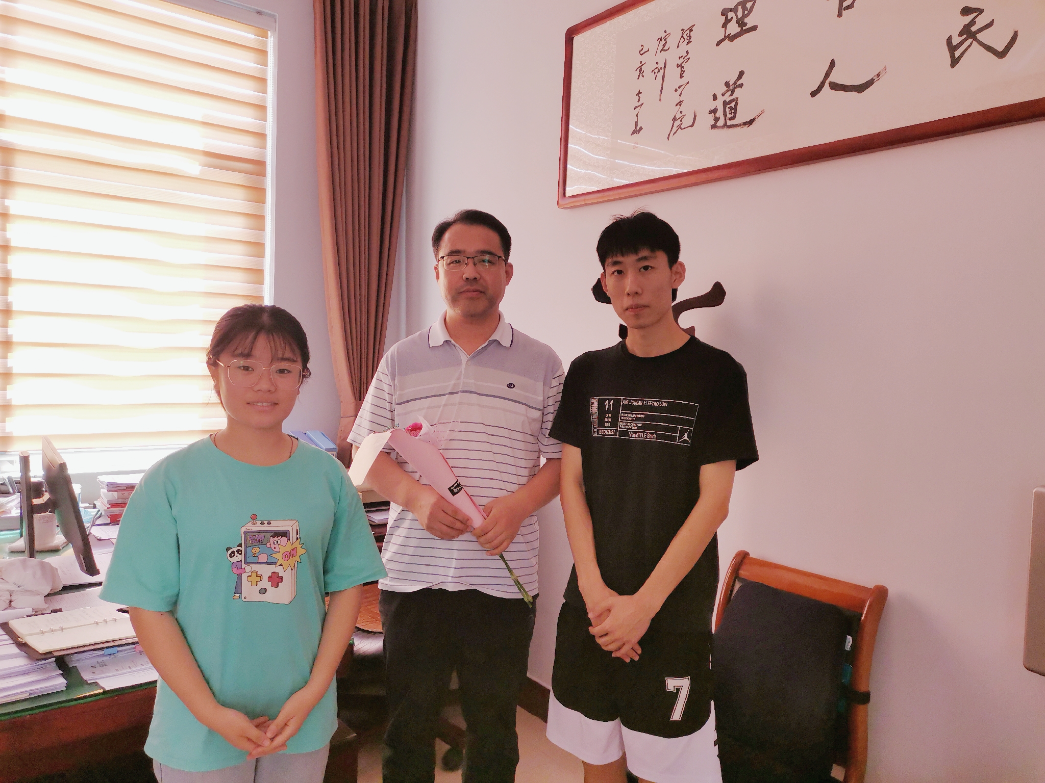 同学们怀着对老师崇高的敬意和满腔的热情,用属于自己的方式感恩教师。同学们或是自己亲手制作贺卡、小礼物送给老师;或是手捧鲜花献给老师;或是制作一小段vlog感谢师恩,用自由多样的形式表达内心对老师默默耕耘、无私奉献的感恩之情。收到同学们的节日祝福和“惊喜”,老师们都感到很开心和欣慰,激动地对同学们说:“谢谢大家,教书育人是老师的职责,希望同学们能够把对老师的这份感激之情,转化为今后学习的动力,将来学业有成,回报社会。”最后,师生合照留念,留存温馨时刻。
