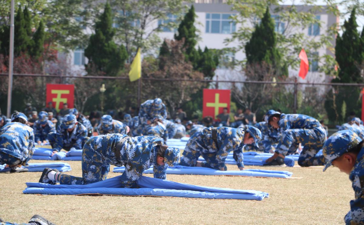 随着教官“比赛开始”的一声令下,千人叠被大赛拉开帷幕。本次比赛限时五分钟,各参赛队员“平铺,横拆,画线,竖折,修边,扯交”等各个动作做的有条不紊、得心应手。赛场上的参赛选手们紧张而有序的进行着比赛,一丝不苟、分秒必争,场下观众屏气凝神,为自己学院选手加油助威。经过短暂的五分钟,原本散乱的被子犹如一个个整齐的“豆腐块”展现在大家面前。一个个细致入微的动作,一个个认真严肃的面容,体现了2020级新生通过军训所培养的踏实肯干的精神。