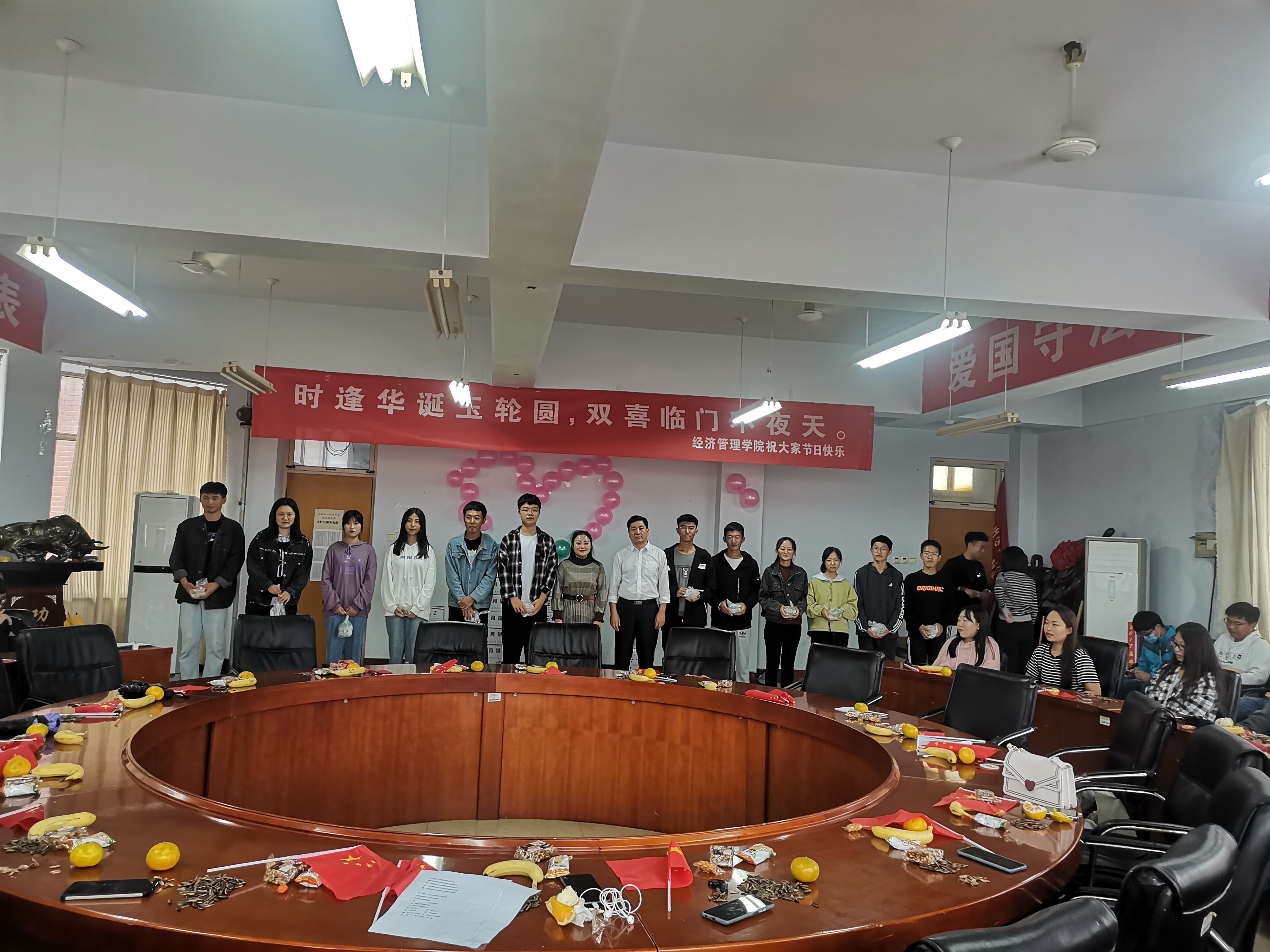 “每逢佳节倍思亲,情深意长盼相聚”。月饼虽小,却承载着经管学院师生共同的心愿和志向,更体现了学院对每一位学子家的温暖和爱的关怀。随后,精彩节目轮番登场,欢快的旋律、热烈的掌声,师生同堂欢庆。最后,在场师生共唱《我和我的祖国》,祝福祖国繁荣昌盛、国泰民安。