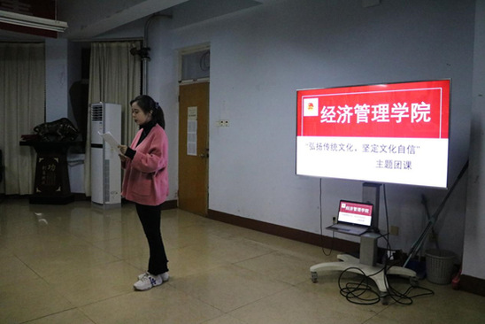 为弘扬中国优秀传统文化和传统美德,激发全体学生的爱国热情和民族自豪感,增强文化自信,12月18日晚,申慱sunbet网站于5号教学楼401室举办“弘扬传统文化,坚定文化自信”主题团日活动。学院共青团工作联系人张娜娜主持了此次活动。