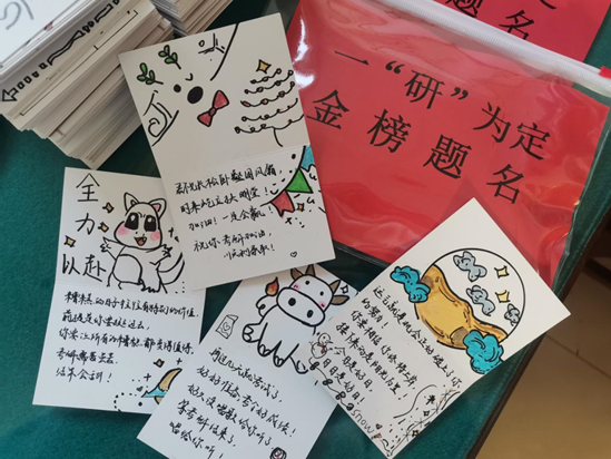 活动前期,学院微信公众号发布推文“考研加油,我们一“研”为定!”,展现了考研学子努力向上的奋斗身影,为考研人加油鼓劲。本次活动主要是我们全体辅导员为考研学子发放考研暖心助力包,助力包内有考试必备的文具和温馨小卡片,卡片内一句句来自内心的温暖话语包含着对考研学子们的深深祝福和鼓励。老师们温馨提醒同学们要合理安排作息时间,注意饮食营养,调整好自己的心态和身体状态,并用自己的经验鼓励大家坚持下去,努力总会有所收获。贴心的礼物,真切的话语,令身处紧张枯燥备考的考研学子深深感受到来自学院的关心与温暖。他们纷纷表示受到了极大的鼓舞,很受感动,会以最好的状态迎接考研,考出自己的水平,不负青春!