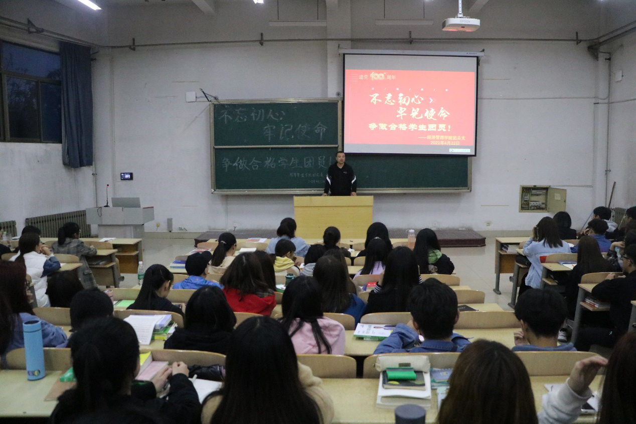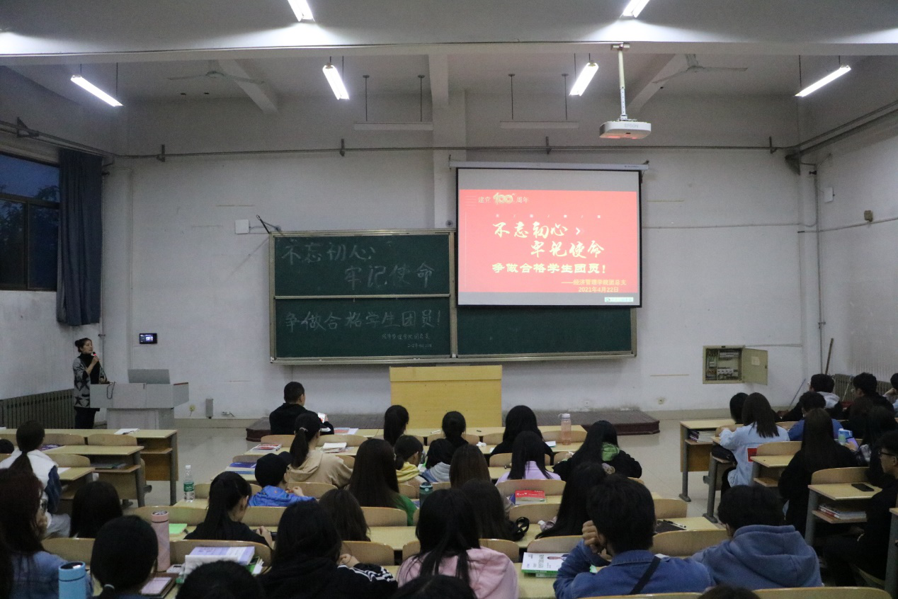 党有号召,团有行动。为进一步深入学习领会习近平总书记在党史学习教育动员大会上的重要讲话精神,助力全院团员青年坚定理想信念,提高团学干部的思想政治素质和工作能力,4月22日晚,申慱sunbet网站团总支在7教205室举办“不忘初心、牢记使命,争做合格学生团员”主题团课活动。主题团课由团总支书记张智涛老师主讲,我们全体团干部、20级优秀入党积极分子和2021年上半年的60名学生党员发展对象参加了团课学习,本次团课活动由团总支副书记张娜娜主持。