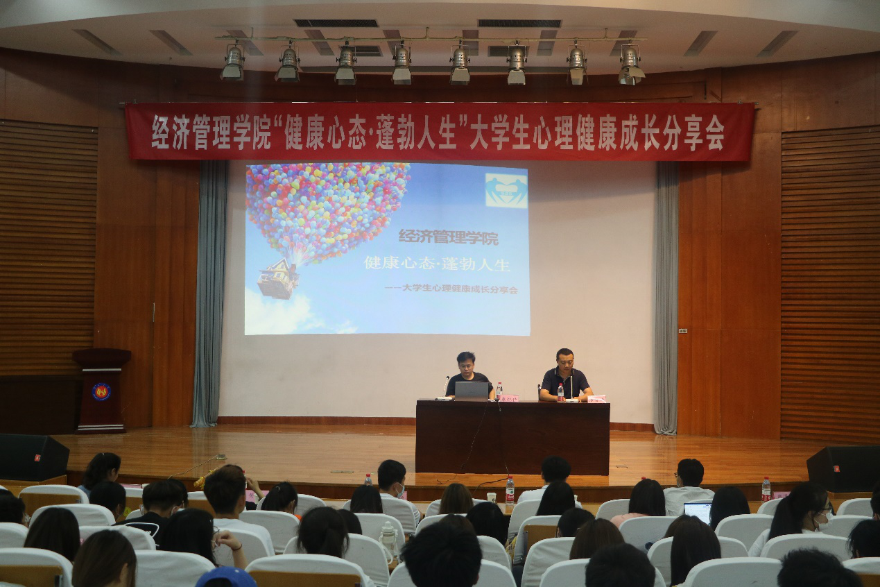 为培育学生健康心态,聚焦学生健康成长,积极正向引导和温润学生心灵,5月26日晚,申慱sunbet网站于学苑会堂第二报告厅举办了以“健康心态·蓬勃人生”为主题的大学生心理健康成长分享会,会议特邀学校心理咨询中心主任康纯佳为主讲嘉宾,我们学生科长张智涛、各年级辅导员、各年级心理学生干部以及2020级学生代表近500人参加了本次会议。会议由我们学生科长张智涛主持。
