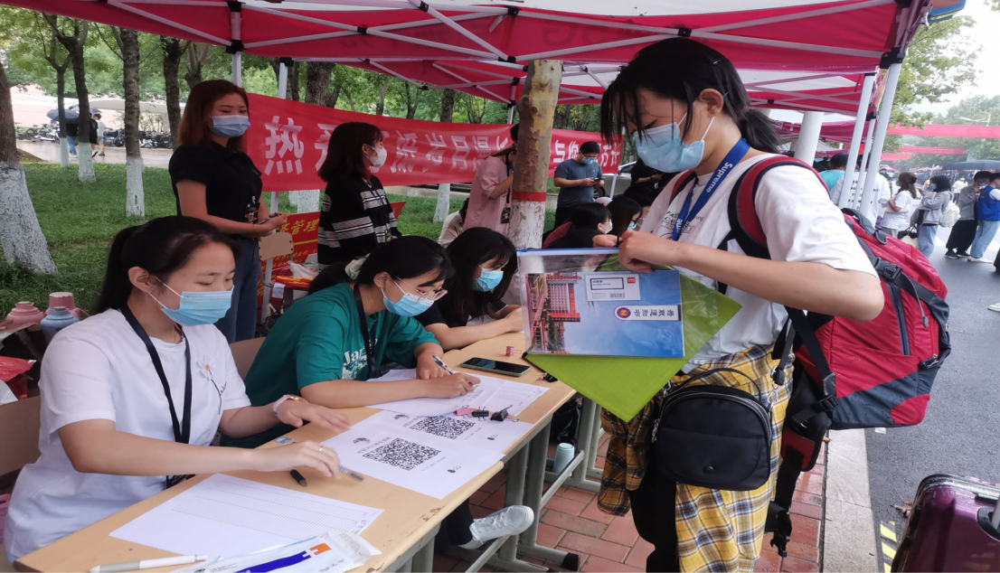 在迎新前学院领导在各方面进行了统一部署,以保证整个迎新工作顺利进行。首先,为了确保新生报到注册工作合理有序,工作人员在迎新现场放置了报到流程图、报到处指示牌,合理设置绿色通道、宿舍分配处、班级分配处等环节。其次,学院迎新工作人员分布于各个接待点,各司其职,亲切问候、耐心答疑,为新生们讲解着报到事项,确保新生能够顺利报到,以良好的精神风貌为每一位新生提供最热情的服务与帮助,发扬了“以人为本,热情周到”的服务精神。最后,学院要求省外新生及全体迎新工作人员全程配戴口罩,严格遵守防疫规定。新生报到时要间隔排队,进行体温检测,查验健康码、行程码和新冠疫苗接种记录等材料后有序进入校园,完成入学报到,开启大学生活。