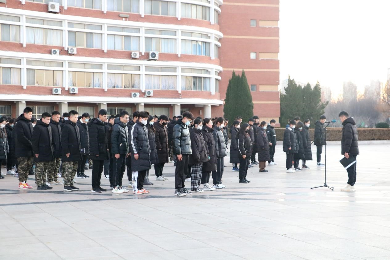 2021年12月13日,是第八个南京大屠杀死难者国家公祭日,为了悼念南京大屠杀死难者和所有在日本帝国主义侵华战争期间惨遭日本侵略者杀戮的死难同胞,坚决反对侵略战争、捍卫人类尊严、维护世界和平,进一步激发我们青年学生的爱国之情、报国之志,学校于信息楼广场组织了“勿忘山河血 吾辈矢志行”国家公祭日升旗仪式活动”,我们30名代表积极参加了本次升旗仪式。