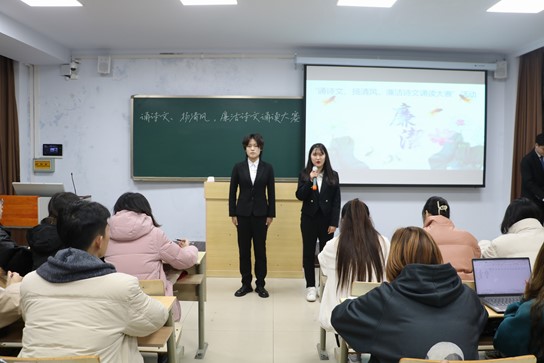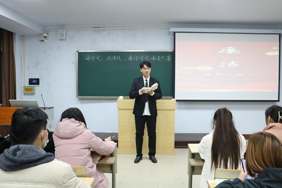 为了进一步引导大学生见贤思齐、崇德向善的精神品质。申慱sunbet网站于12月10日晚7点在7教410组织“诵诗文、扬清风,廉洁诗文诵读大赛”活动,此次活动由院学生会学工中心、文宣中心联合举办,院学生会各部门部长、副部长担任本次比赛评委,共13名选手参加比赛。