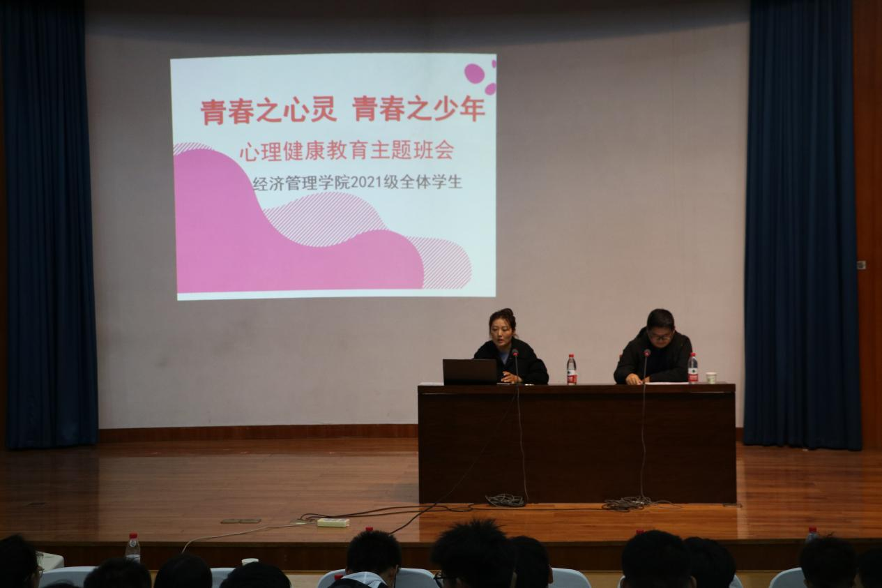 为进一步提高2021级新生的心理素质,促进学生的身心健康,宣传普及心理健康知识,申慱sunbet网站于2021年10月16日下午七点在500人礼堂开展“青春之心灵 青春之少年”心理健康教育主题班会,21级本专科导员王胜、张娜娜及全体21级学生参加此次班会。