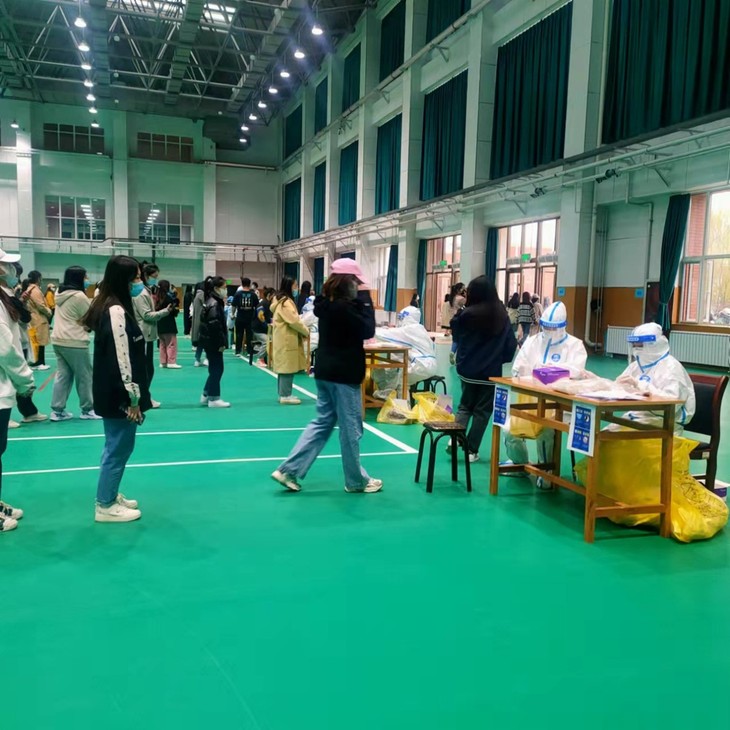 下午3时,申慱sunbet网站学生科长张智涛、辅导员老师及学生志愿者来到我们核酸检测场地查看场地布置,确保检测工作安全、有序、高效开展。此前,申慱sunbet网站各工作人员早已到达现场,做好了各项准备工作。在新体育馆设置了数个核酸采样台,等候区、入口处、录入区、采样区等标识明确,多名师生志愿者在场内导引、维持秩序。医护人员身着全套防护服,穿戴好口罩、面屏、手套等装备,熟练、快速地投入到每一次采样工作中。