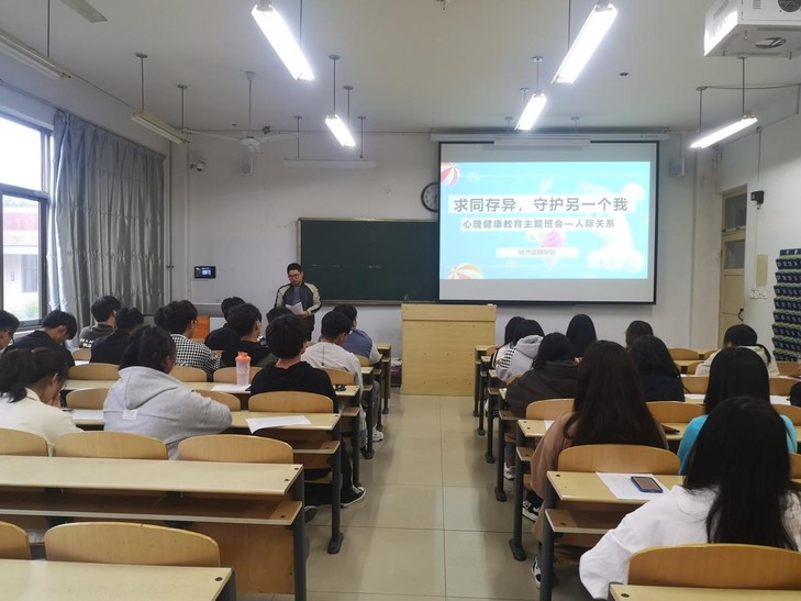 各班级以畅谈生活经历和同学互动分享两种形式展开班会,由本班心理委员向学生们分析大学生人际关系的特点,阐释疫情下宿舍关系的新常态,并且通过PPT展示处理人际关系的典型案例,带领同学们寻找成功的做法,大家在愉悦的氛围中加深了对彼此的了解。会议中还设置了“信任背摔”、“默契挑战”、“谁是我的朋友”等一系列班级团体游戏,让学生们在游戏过程中感受到集体的力量,提高了班级凝聚力。