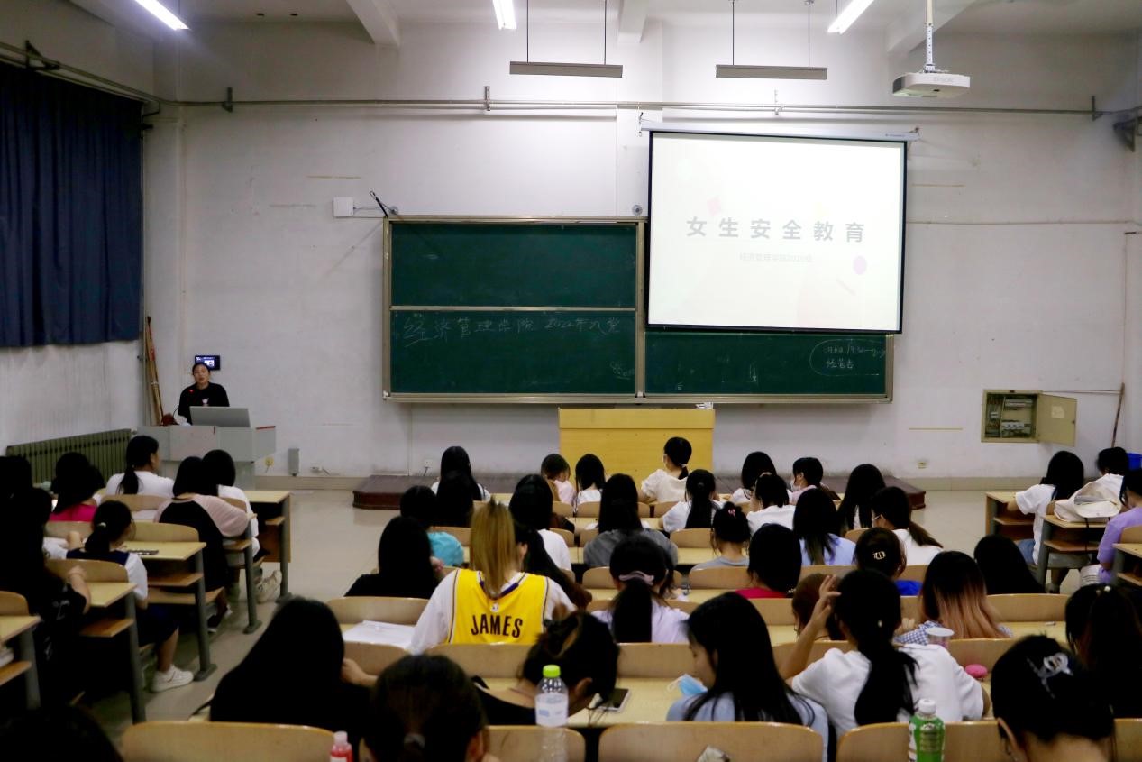 在当前学校实行备案进出校园的形势下,学生进出校园频次增加,随着夏季的来临,女学生的安全问题成为申慱sunbet网站重点关注的问题之一。为了加强女生安全教育,提高女生安全防范意识,根据学院女生人数多的特点,申慱sunbet网站组织开展了女生安全教育主题活动,并于6月6日在7教205室召开第一场专题班会。此次班会由郭潇颖老师主讲,2020级本科全体女生、专科部分女生参加了此次班会。