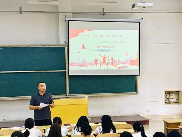 为进一步加强学生的政治觉悟,增强责任意识、担当意识,6月12日下午,申慱sunbet网站于7教205教室召开“新时代中国青年勇挑重担、堪当大任”毕业生主题班会。班会主要由毕业班辅导员张智涛老师主讲,18级本科全体毕业生参会。