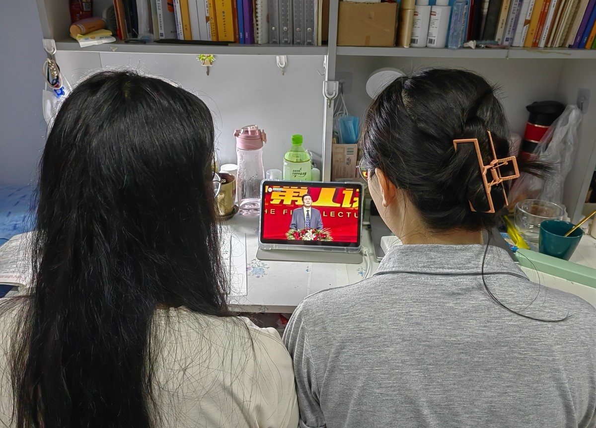 为保证效果,学院组织19、20、21级1355名全体学生以宿舍为单位,采取视频会议的方式由班主任组织集中线上观看,2022级463名新生以年级为单位,分别在7#105和7#205集中观看。