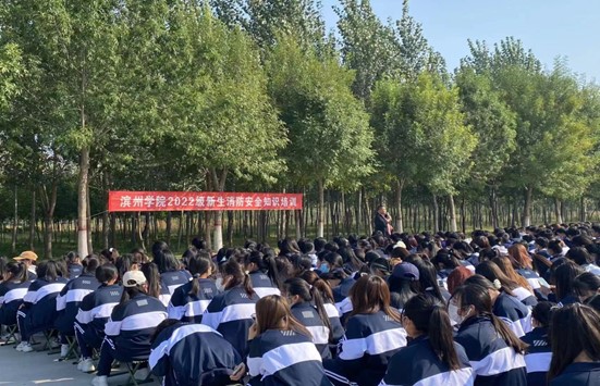 安全高于泰山,生命高于一切。为提高新生消防安全意识,提高应急自救能力,进而保障学生的生命、财产安全,预防和减少火灾危害,10月8日上午9时15分,申慱sunbet网站于田径场参加2022级新生消防安全知识培训活动。培训由李老师主持,滨州市消防支队对消防知识进行系统地讲解。