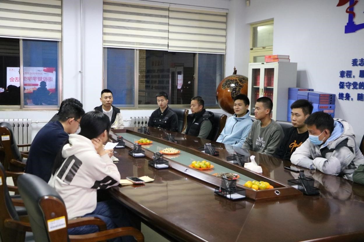 为深入了解退役大学生士兵的思想、学习、生活等方面状况,进一步激发退役大学生的从军初心,10月28日晚7时,申慱sunbet网站于6号教学楼310室召开退役复学学生茶话会。我们党总支副书记于峰、学生科科长张智涛、专聘辅导员军政联系人刘彬、辅导员张慎杭出席此次会议,全体退役复学学生参加了本次会议。