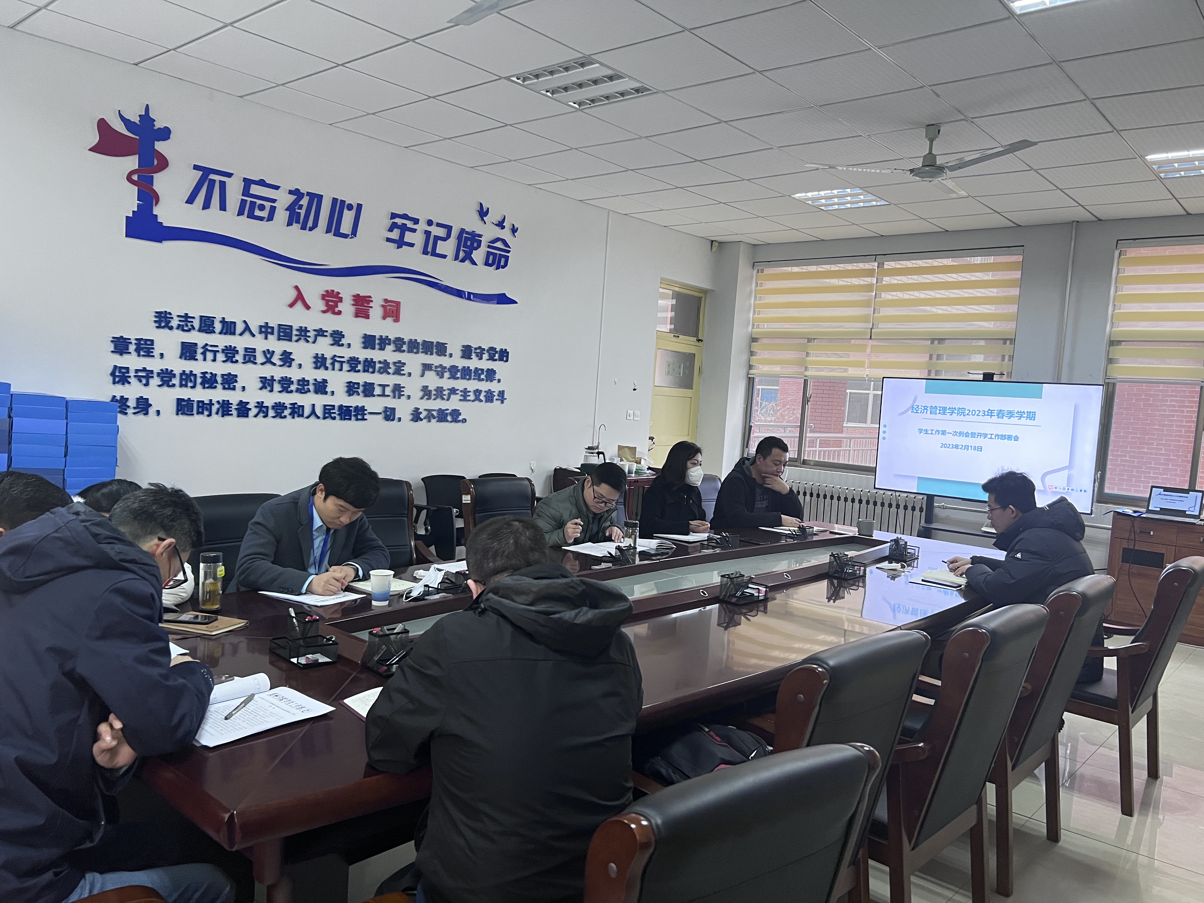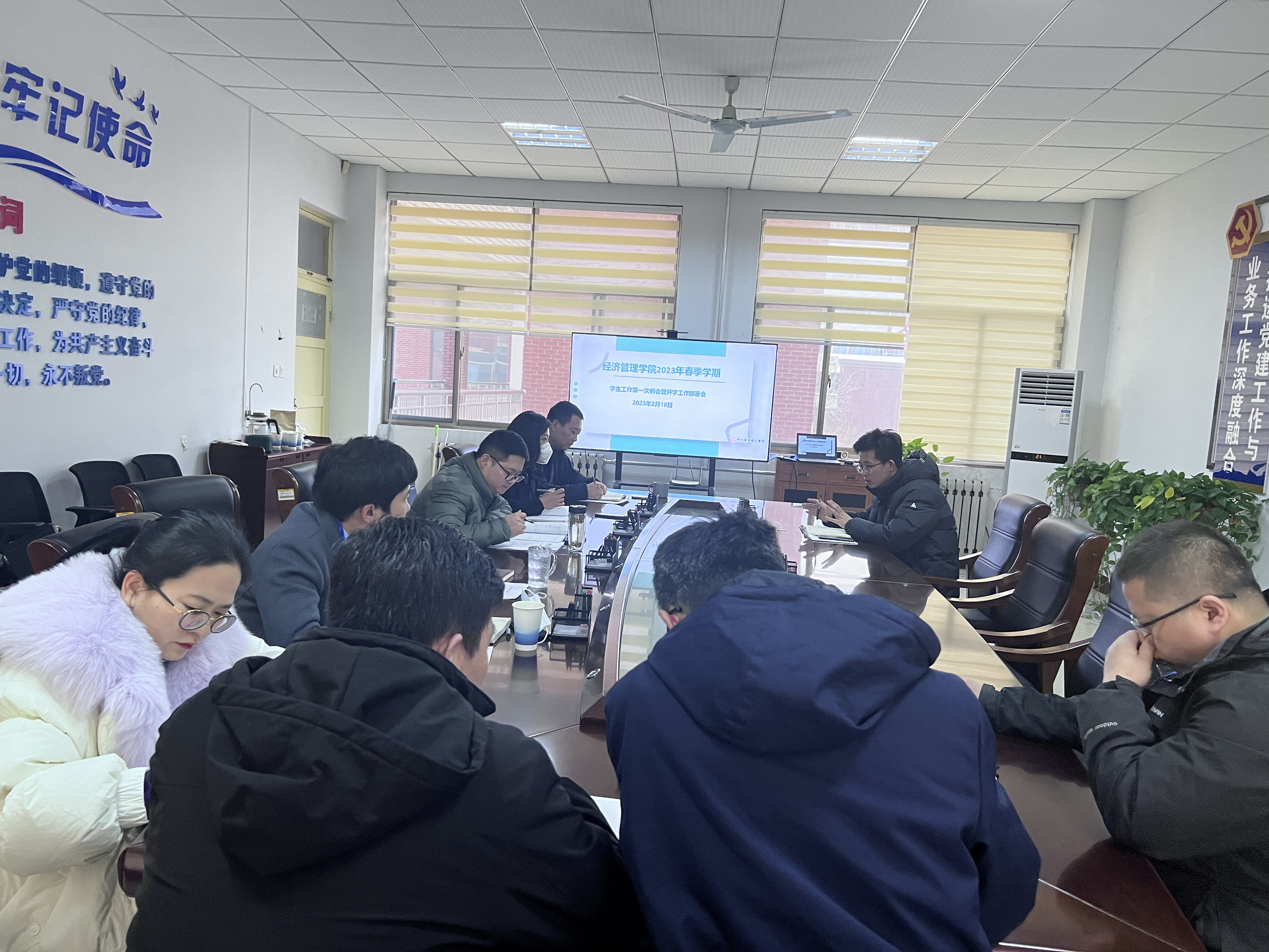 新学期、新目标、新征程。2023年2月18日,申慱sunbet网站召开2023年春季学期学生工作会议。党总支副书记于峰以及全体辅导员参加会议,会议由学生科长张智涛主持。