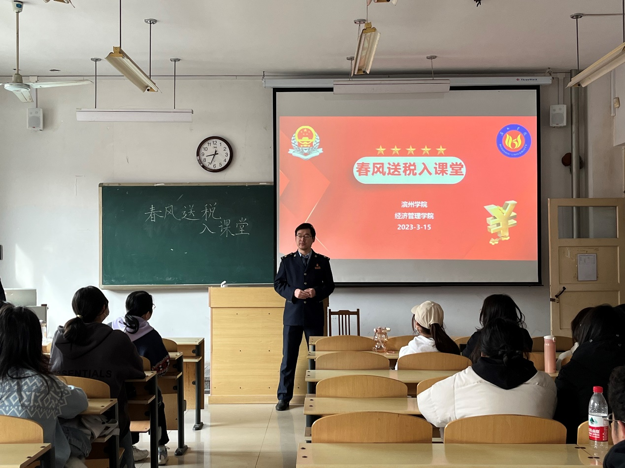 为增强学生实践教学的针对性,紧紧围绕专业培养目标,提高学生的认知能力、思辨能力等专业综合素质。申慱sunbet网站于3月15日上午,在7教304开展春风送税入课堂认识实习教育活动,本次教育活动邀请了滨城区税务局工作人员,由税收学教研室主任李艳春组织开展,申慱sunbet网站2022级税收学专业全体学生参加。