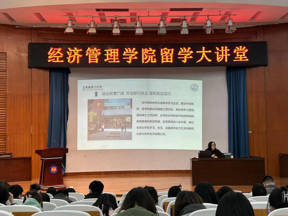 本次讲座,两位老师主要从以下三点为同学展开讲解:一为什么要留学;二热门地区/国家研究生申请指南;三关于韩国和美国留学方面的相关知识以及相关准备工作。对于国外留学和国内考研的问题,林老师通过讲解个人在韩国的留学生涯向大家解释了为什么要出国留学以及出国留学的意义;随后,谢老师对美国金门立大学进行了介绍,详细讲解了相关专业课程。最后,老师们希望,有留学意向的学生提前做好准备,严格要求自己,培养自己的独立能力,多多关注留学的注意事项以及政策动态,做好万无一失的准备。