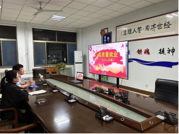 本次会议主题是怎样高质量就业,主要从出国留学和征兵入伍两个方面来讲述。会议伊始,荣利老师对全体家长给予了诚挚的感谢,随后刘彬老师就留学和征兵入伍方面为家长们做出深入解读。刘老师分析了出国留学的利与弊,并结合其自身经历以及其他学生的一些经历进行具体讲解,并展示了国外留学学生的生活实景,给予家长们美好憧憬。其次,刘彬老师通过多个大学生应征入伍典型事迹,生动地阐释了参军入伍是人生一笔宝贵的财富,同时,参军报国也是磨砺人生、实现高质量就业的重要途径。最后,刘彬老师鼓励我们的有志青年踊跃报名参军,体验别样青春,用热血助力强军梦想。