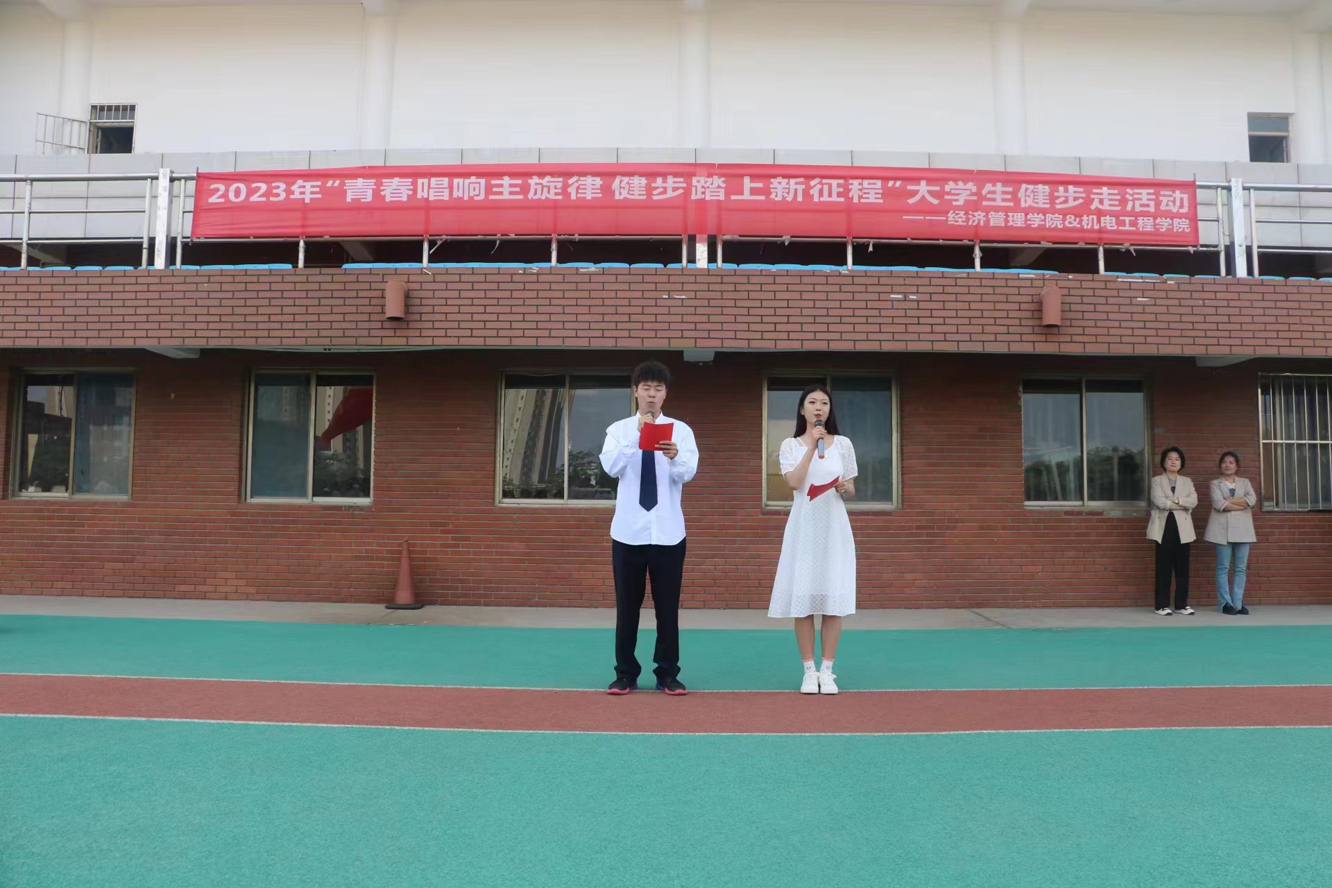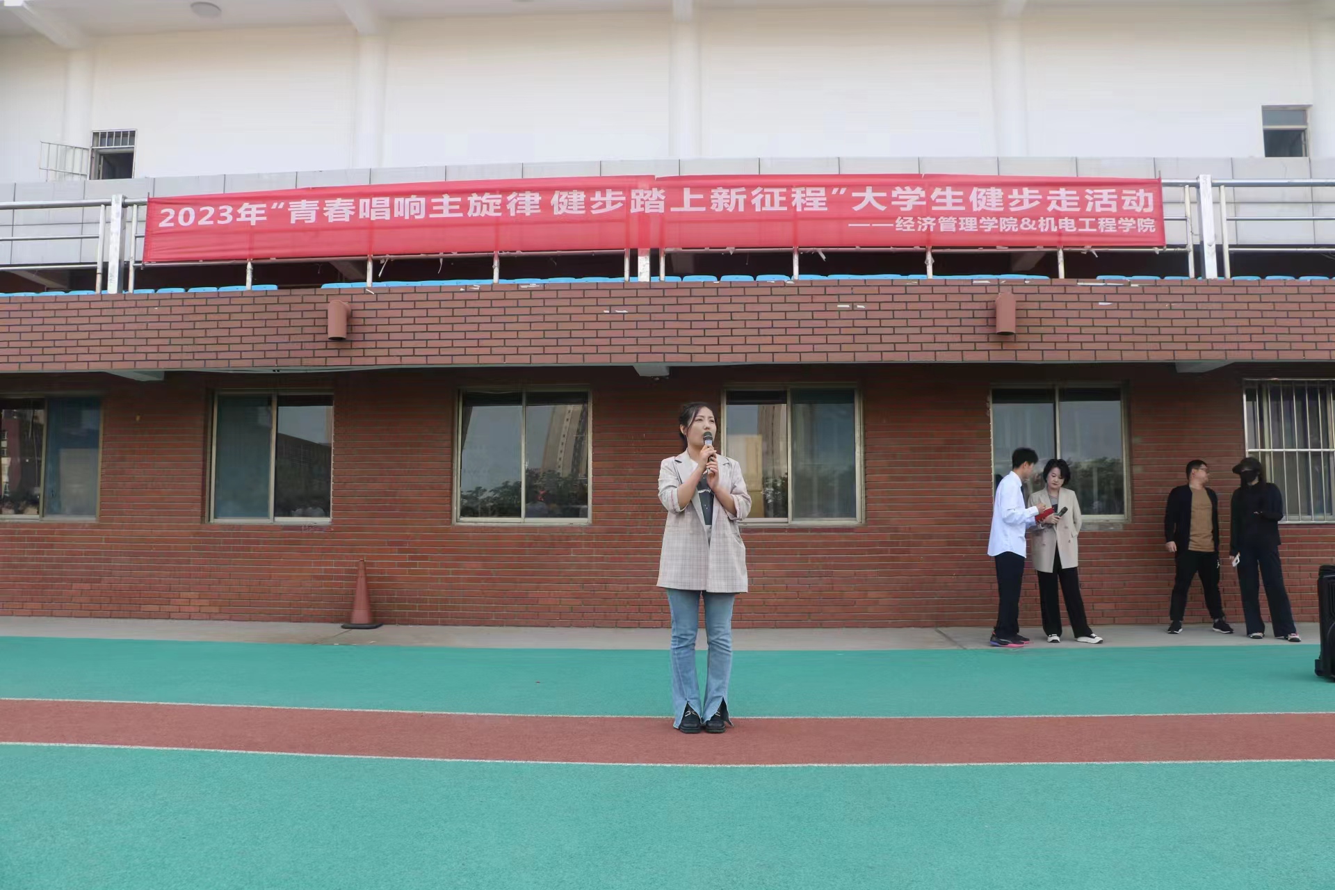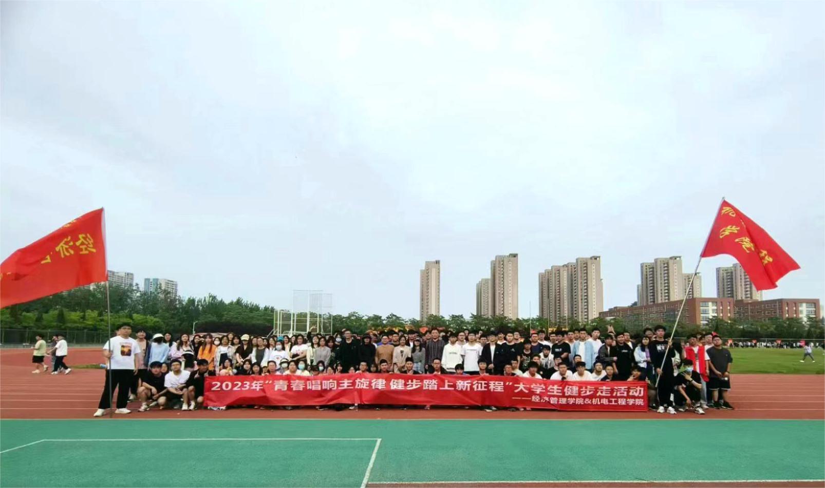 为深入学习贯彻党的二十大精神,激发大学生参加体育锻炼的热情,倡导科学、文明、健康的生活方式,提升青年学生的体质健康水平,做好2023年春季学期学生体质健康测试工作。5月9日下午,申慱sunbet网站联合机电工程学院于新田径场举办2023年“青春唱响主旋律 健步踏上新征程”大学生健步走活动。申慱sunbet网站辅导员张娜娜、王胜、张慎杭老师出席此次活动,2020级、2021级、2022级全体在校学生参加本活动。