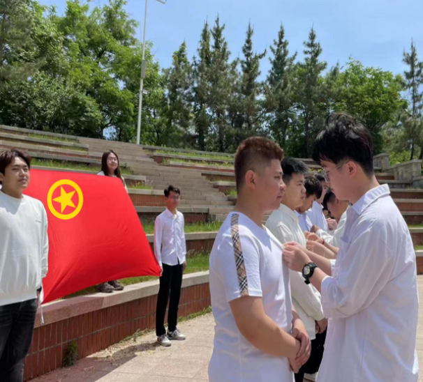 青春孕育无限希望,青年创造美好明天。为深入学习宣传贯彻党的二十大精神,加强共青团组织队伍建设及仪式教育,2023年5月8日12时,我们在水上广场举行以“学习党的二十大永远跟党走 奋进新征程”为主题的新团员入团仪式。辅导员张娜娜、本次新发展的团员、老团员代表共计20余人参加本次仪式。仪式由学院学生兼职团总支副书记李晓朋主持。