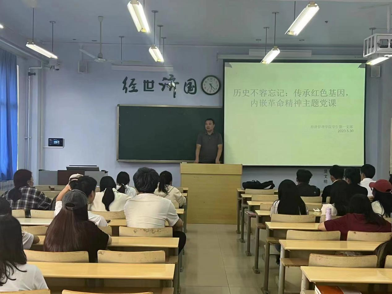 为提高我们党员与入党积极分子的党性修养,传承红色基因,弘扬革命精神的新时代价值,申慱sunbet网站于5月30日下午四时在7号教学楼401室召开“历史不容忘记:传承红色基因,内嵌革命精神”主题党课。本次党课由学生第一支部书记张智涛老师主讲,支部全体党员和入党积极分子代表共计50余人参加。