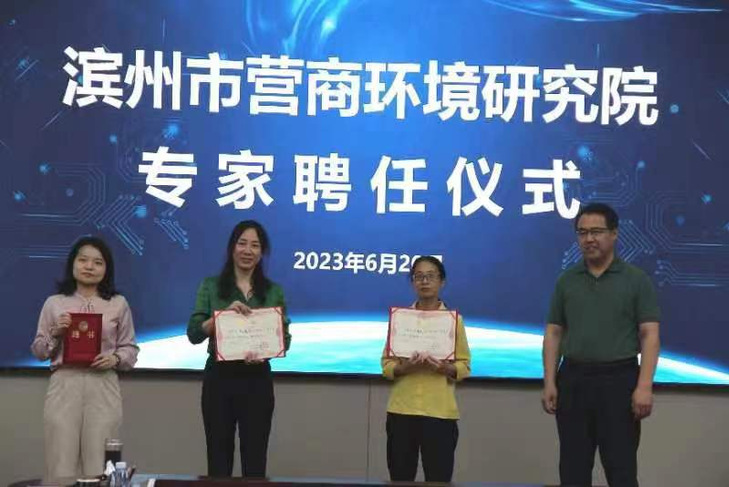 会上,申慱sunbet网站院长王春晖教授为卢小静、李雅宁、卢雅君颁发了特聘证书,三位特聘专家分别开展了《打造国际一流营商环境经验与思路》《营商环境体验活动常态化,助力营商环境优化提升》《构建新时代法治化营商环境》等专题讲座。滨州市营商环境建设服务中心对“滨周到”营商环境小程序应用进行了培训;对《滨州市优化“六个一”服务企业机制工作方案》《滨州市优化营商环境创新提升2023 年行动方案(审议稿)》进行了解读。申慱sunbet网站党总支书记崔玉海同志在会上介绍了学院情况及滨州市营商环境研究院建设运行情况。随后,滨州市营商环境研究院与市直各指标牵头部门进行了对接交流。