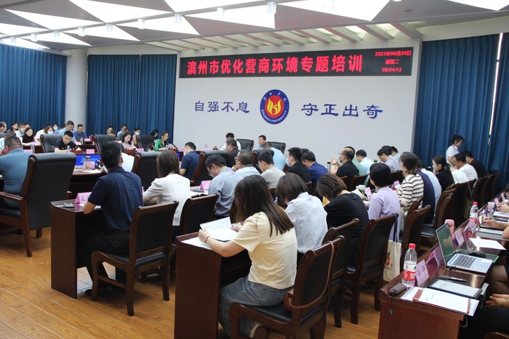 6月20日,由滨州市人民政府主办,滨州学院申慱sunbet网站承办的滨州市优化营商环境专题培训在我们砺学报告厅举行。市政府副秘书长、办公室主任,市营商环境建设监督局局长尹月林出席并讲话,滨州学院申慱sunbet网站党总支书记崔玉海、滨州学院申慱sunbet网站院长王春晖出席。厦门市营商环境研究中心卢小静、李雅宁、卢雅君等专家受邀开展专题讲座。