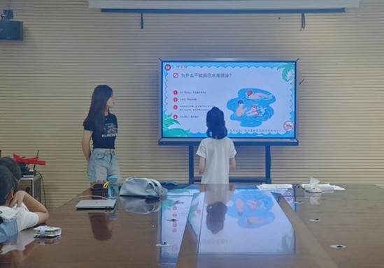 在滨州市住建局暑期托管班,团队成员对的同学们进行了“推普+防溺水”为主题的宣讲活动。活动中,团队成员组织学生们观看防溺水安全教育宣传短片,带领学生学习防溺水安全教育歌,讲解防溺水安全防范的知识和发生溺水时自救自护的方法。此次活动,学生们增强了防溺水安全意识,掌握了防溺水知识技能,提高了自救互救能力。