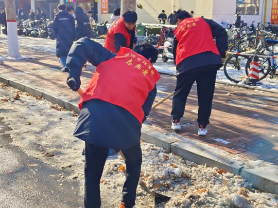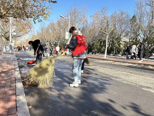 为提供安全顺畅的交通环境,保障师生的正常出行,12月25日中午,我们志愿者们奋战在除雪一线,全力以赴清扫冰雪。